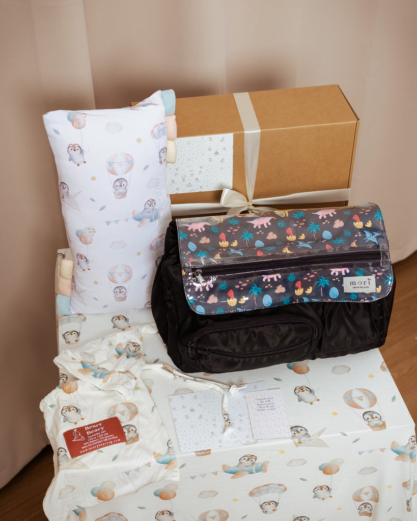 Stroller Organiser + Baby Bamboo Swaddle + Baby Bamboo Pillow + Gift-Ready Box Packaging with Gift Card