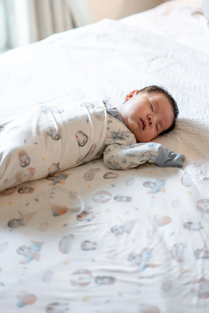 2. Bearybeary's Penguin Explorer Bamboo Swaddle