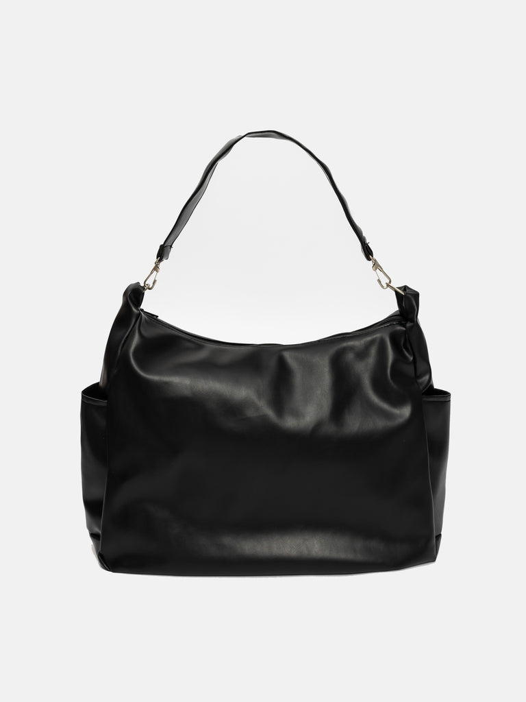 A wide shoulder strap ensures easy carrying — even with a laptop. Matte silver D-rings let you personalise with your favourite bag charms, while the curved hobo silhouette keeps it chic and easy to wear, day in and out.