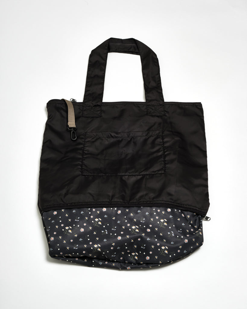 Chamomile Black CarryAll Expandable Washable Tote Bag 2.0