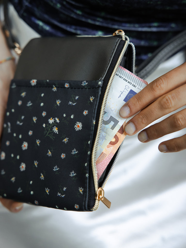 Perfect hands-free compation to carry a bunch of small items while being on the move (think: phone, keys, cards, lipstick, tissue, pens & more)!