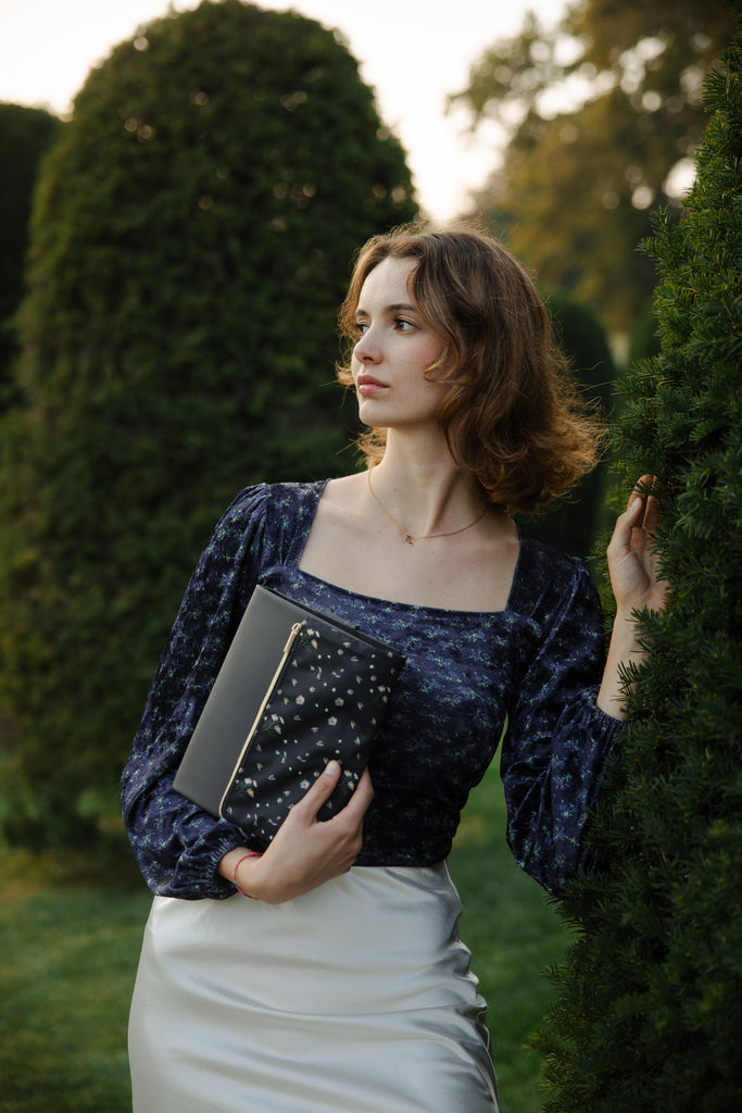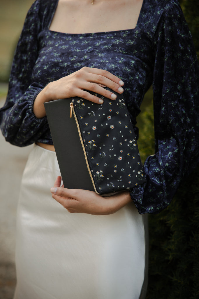 Chamomile Dark Grey Pursebook (A5) - Paper Notebooks/E-reader or iPad Mini Holder