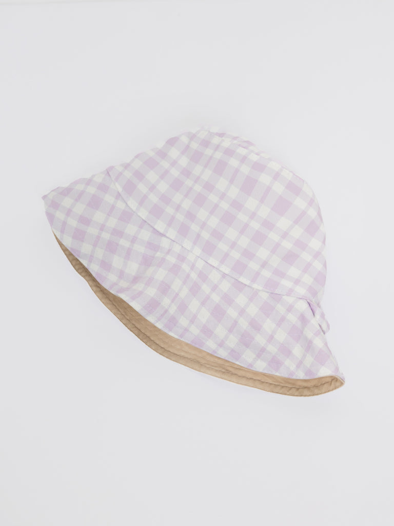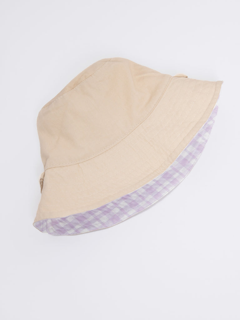 Lilac Gingham Cream - Reversible Bucket Hat (Baby/Toddler)