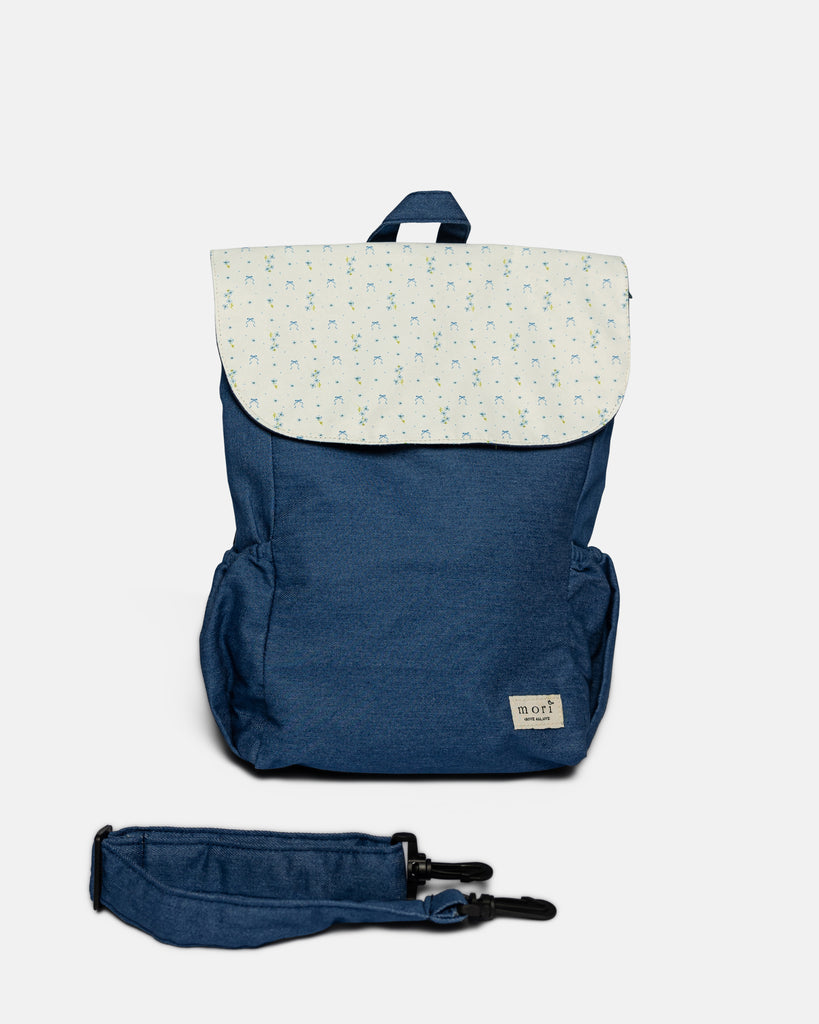 Mini Florals and Ribbons Denim Utility Backpack 3.0