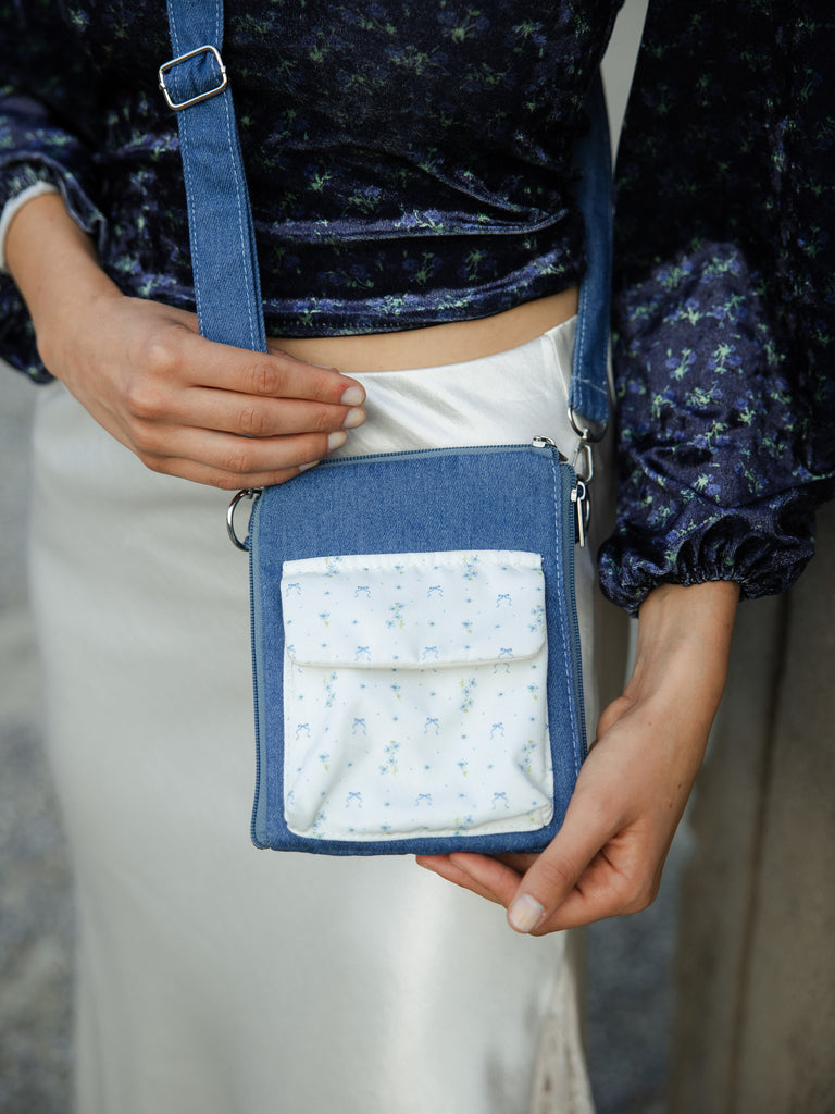 Mini Florals Ribbons Denim Cargo Dual Zip Sling Bag 3.0
