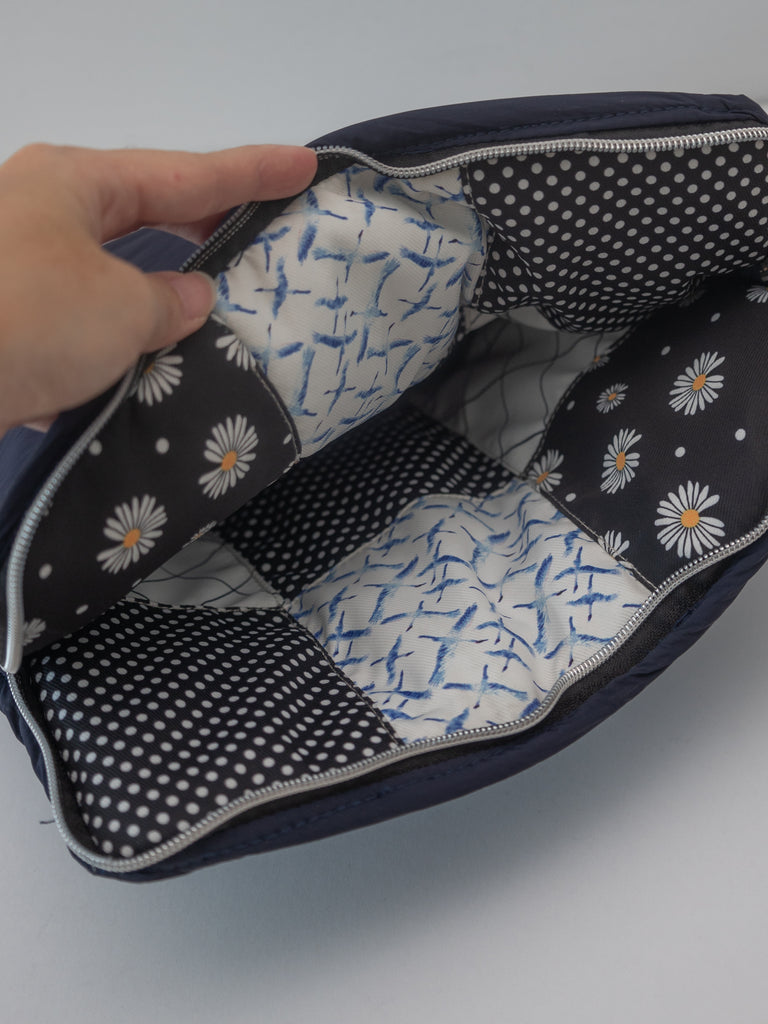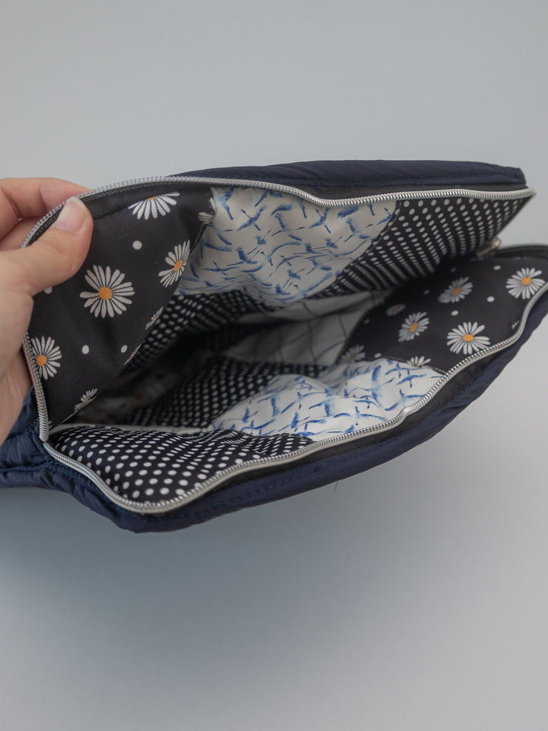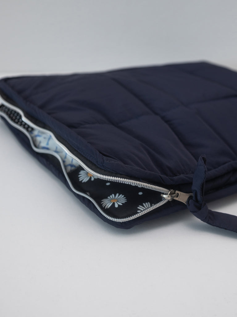 PUFFIES Patchwork Reversible Laptop Sleeve - Navy (Upcycled)