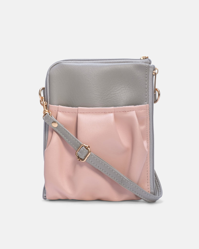 Pleats Pink Grey Dual Zip Sling Bag 3.0