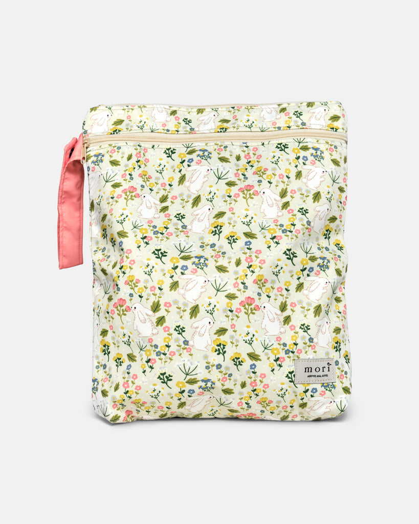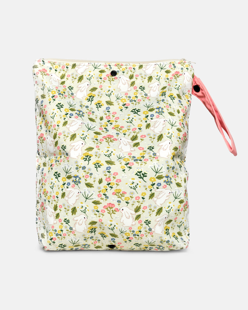 Rabbit Florals Yellow - Wet Bag (w snap on button)