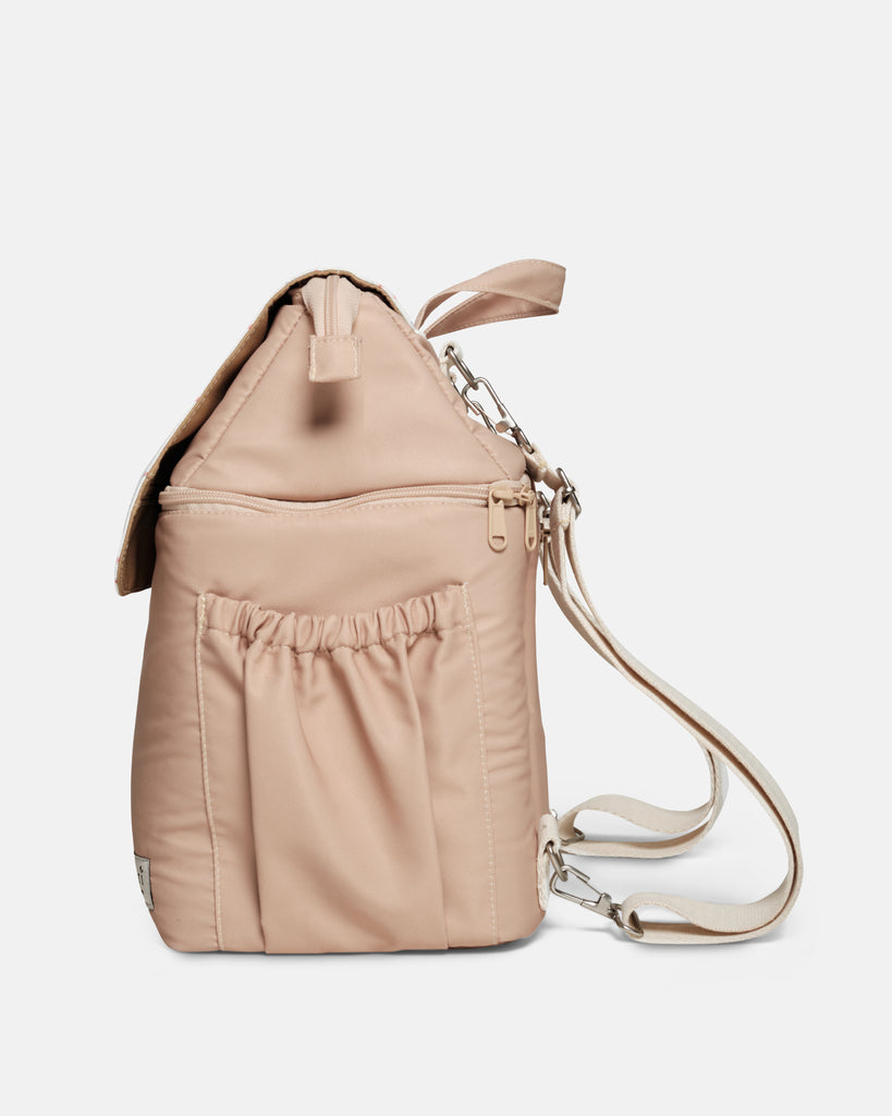 - Made of water-resistant poly canvas, vegan leather, cotton strap, insulation lining