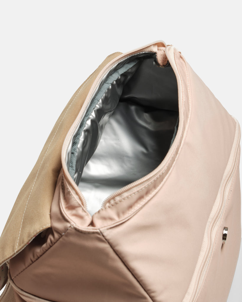 It comes with 2 insulation body zipper compartments so you can compartmentalise your items, for example, breast pump and clothes and diaper at the bottom compartment and milk and ice packs/blocks at the top compartment.