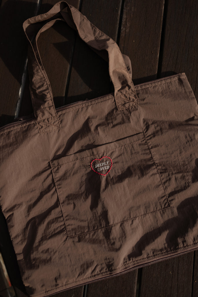 2. Expandable Tote with Personalised Embroidery Heart with Text Options: