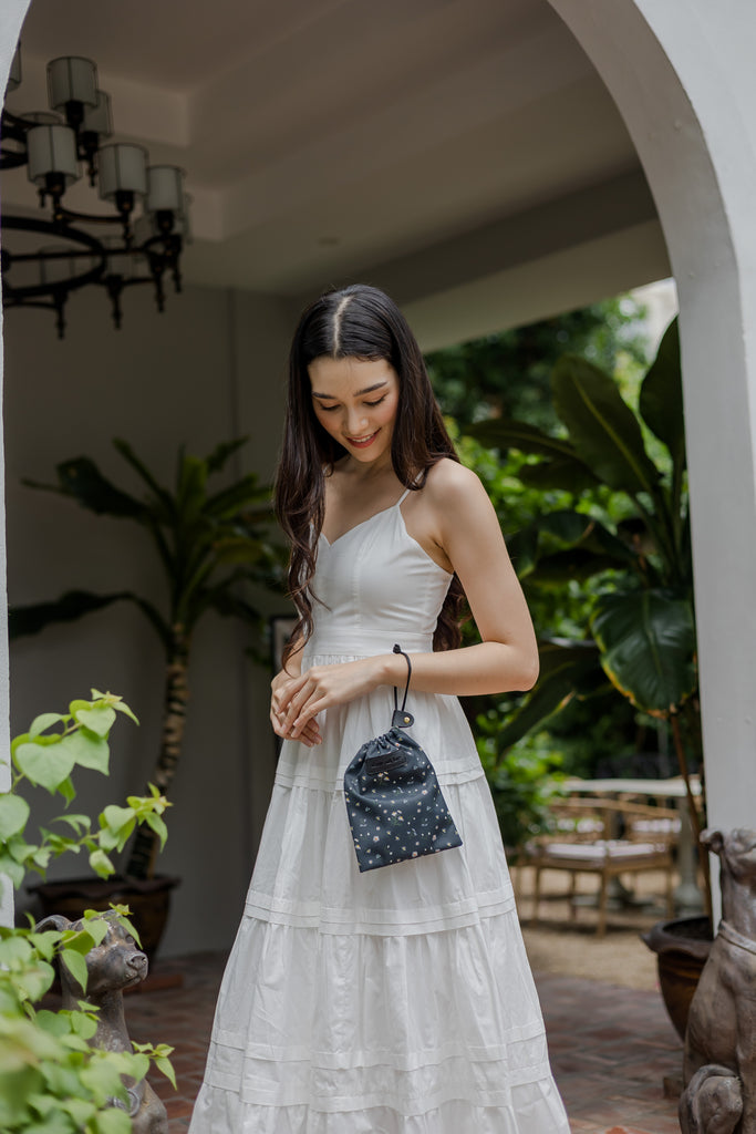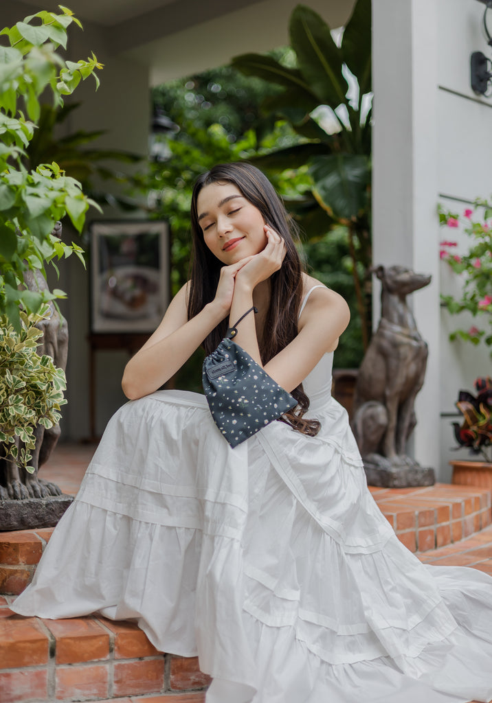 {{Lovetheark x Mori}} Chamomile Dark Grey Drawstring Pouch
