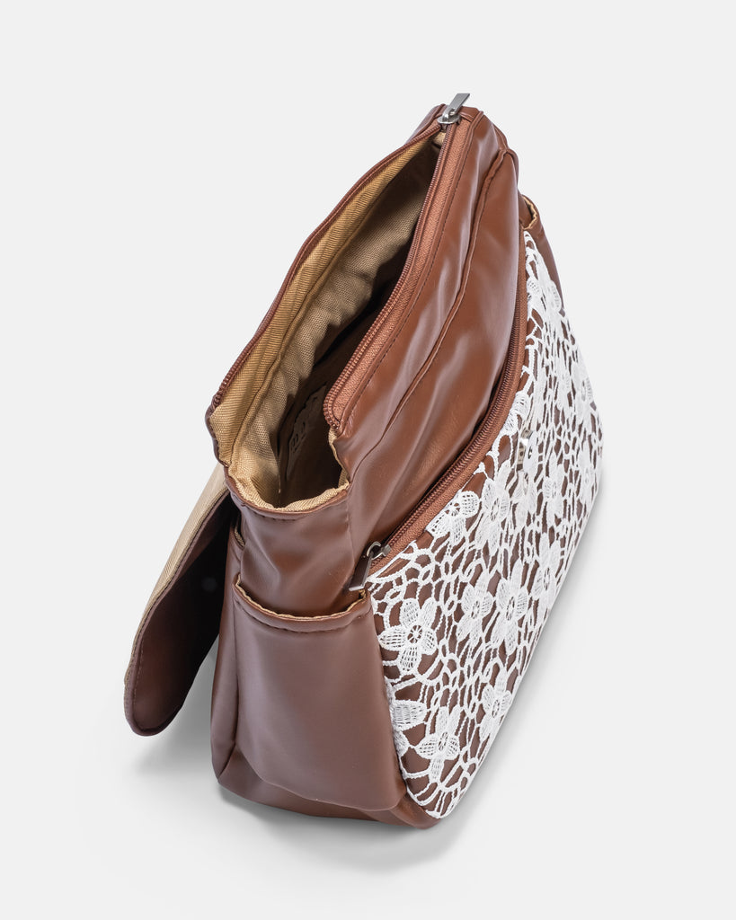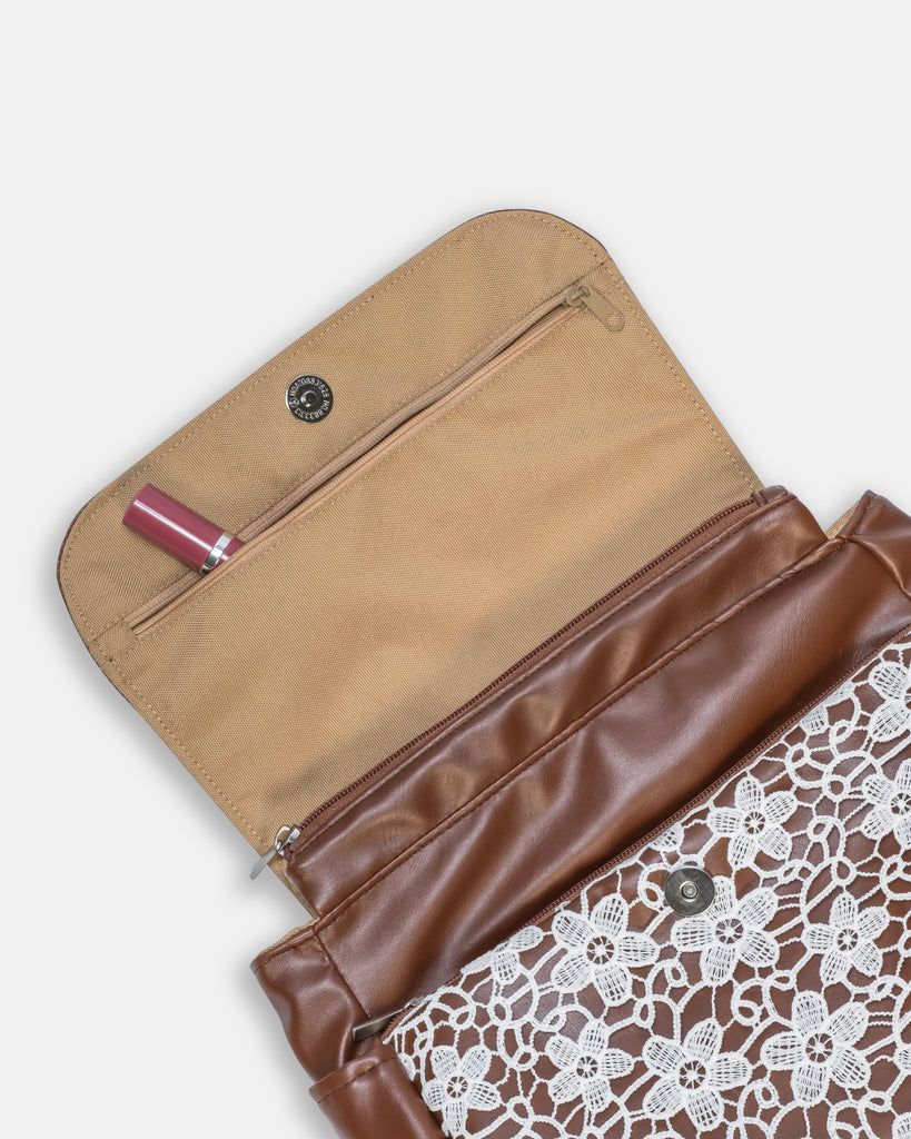 Eight thoughtfully designed compartments—a spacious body zip compartment with an open pocket slot and hidden zipper compartment, a convenient flap compartment for small items, a front zipper compartment with card slots, 2 small side pockets for lipstick and mints, and a back open pocket.