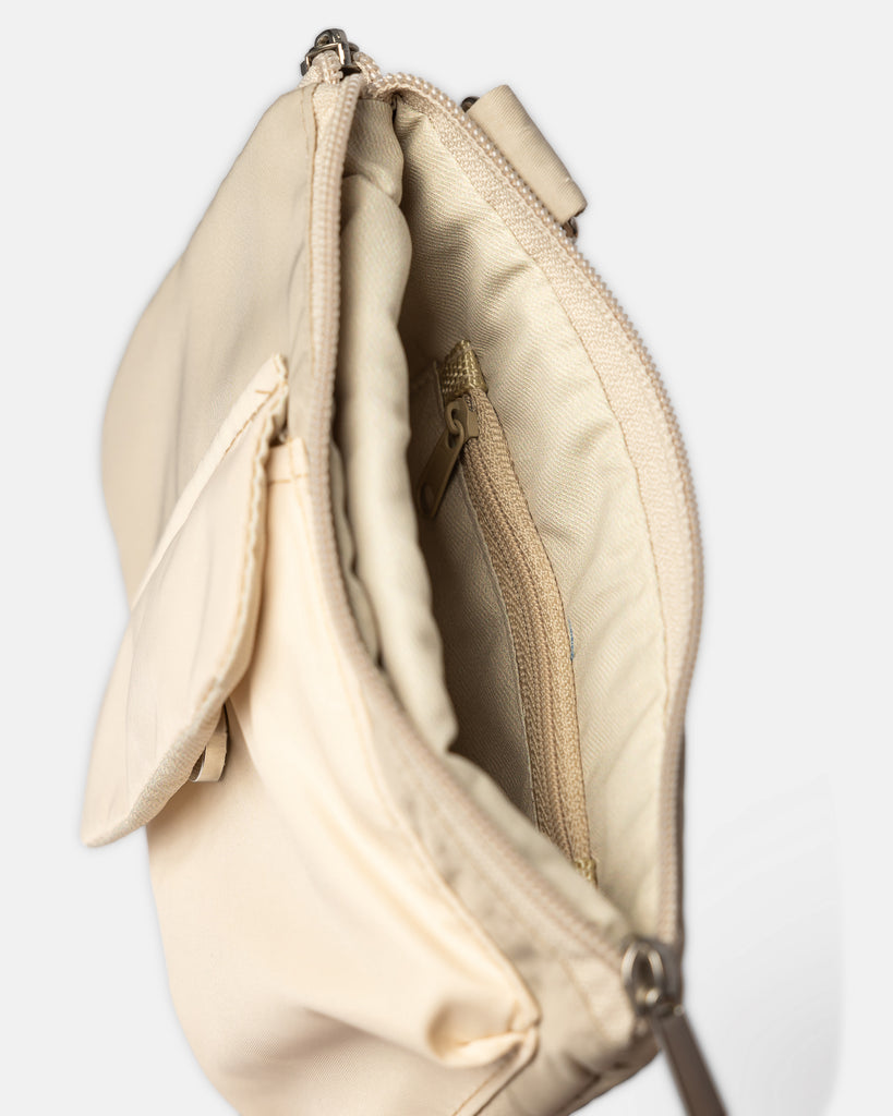 {{Ecoluxe}} Taupe Cream Cargo Dual Zip Sling Bag 3.0
