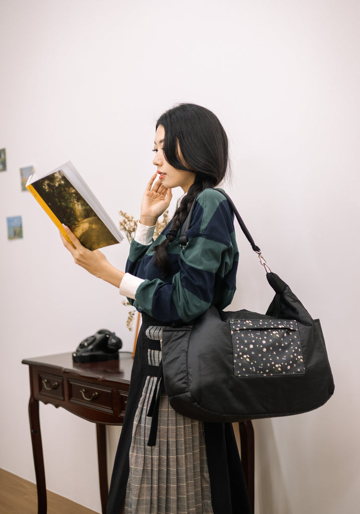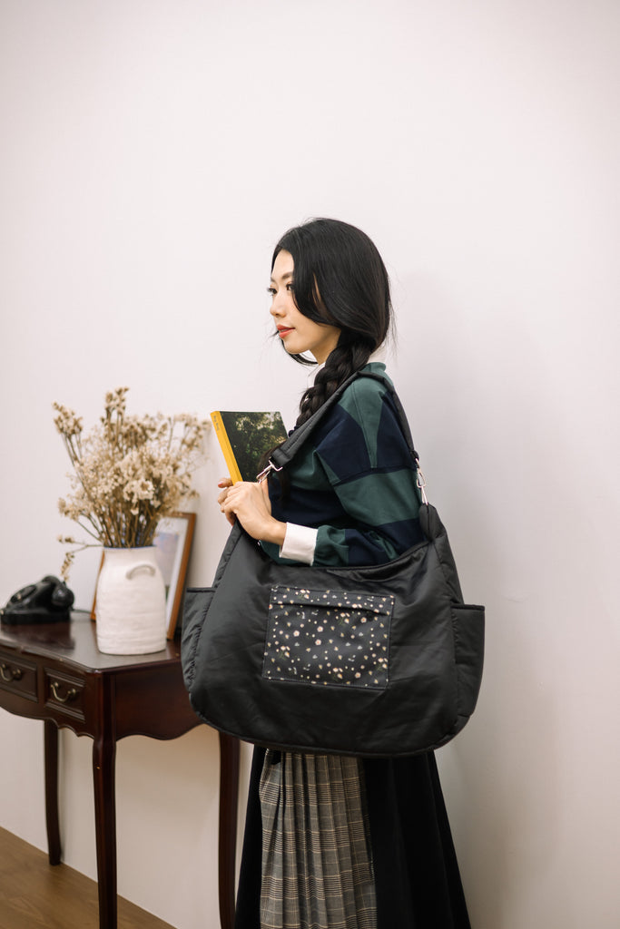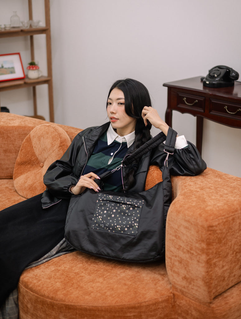 For Puffies Bloom range daily care, you can remove the strap and wash the entire bag. It is also made fully of water-resistant fabric, so both exterior and interior can be wiped down easily with wet wipes.