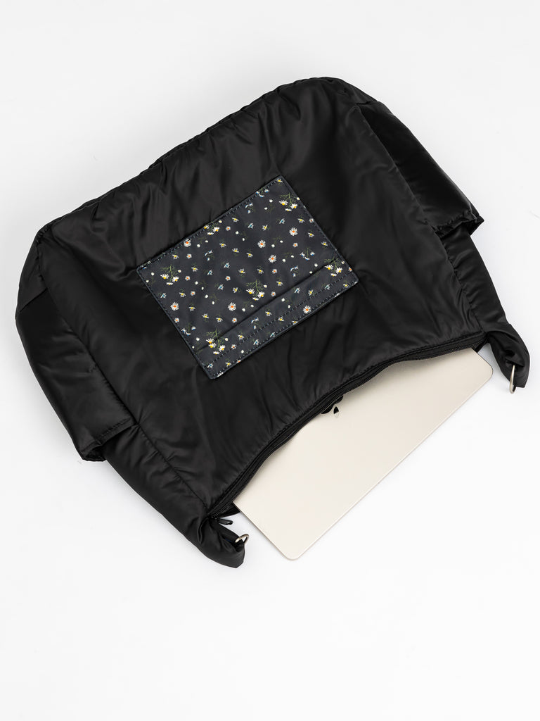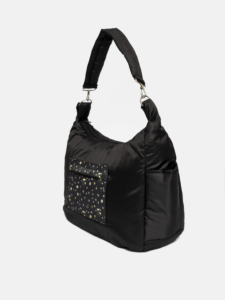 Your everyday go-to, elevated — this roomy hobo-style tote fits a 15” laptop, with inner compartments and two side pockets for quick-access essentials. Crafted in soft vegan leather or subtle puffy florals, it transitions effortlessly from work to weekend to travel. Designed with a wide strap for all-day comfort, even with your laptop in tow.