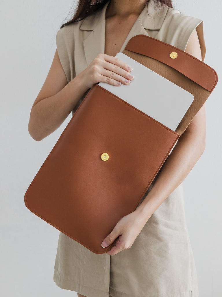 Handcrafted with premium thick vegan leather for your laptop or documents. Sleek and classy for work or school. Unisex.