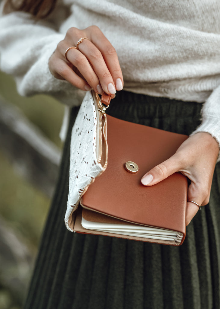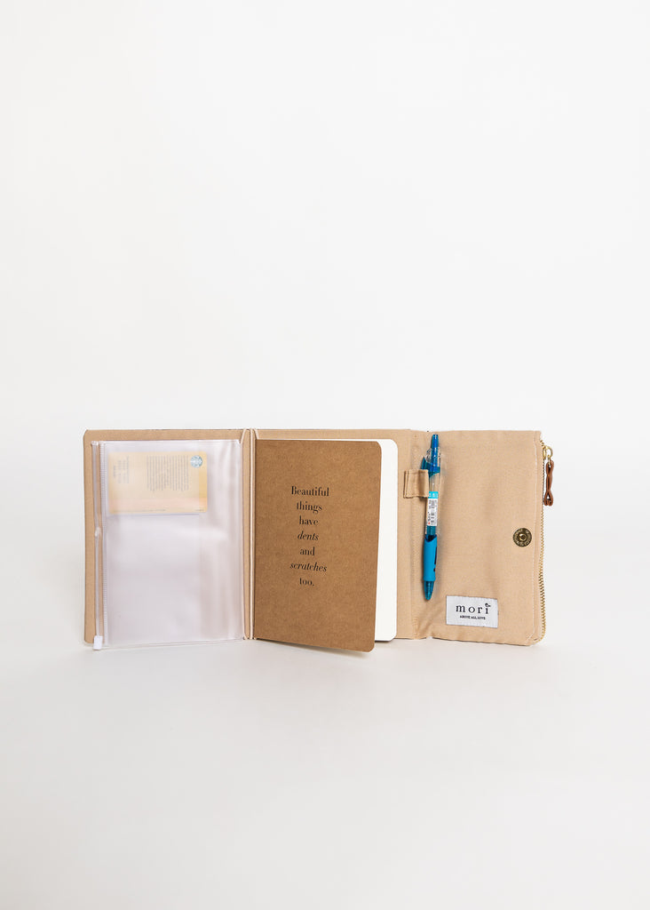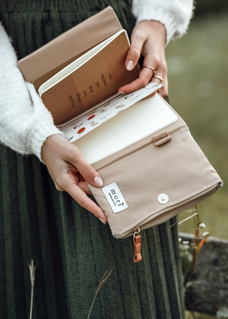 A one-of-a-kind creation by Mori, the Pursebook redefines what a notebook can be. It's designed with a functional built-in purse to effortlessly carry your stationery or phone in one elegant package. Whether for work, school or spontaneous moments of inspiration, you're always prepared to capture your thoughts anytime and anywhere.