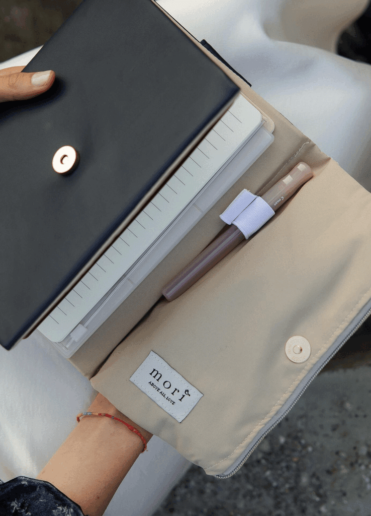 A one-of-a-kind creation by Mori, the Pursebook redefines what a notebook can be. It's designed with a functional built-in purse to effortlessly carry your stationery or phone in one elegant package. Whether for work, journaling or spontaneous moments of inspiration, you're always prepared to capture your thoughts anytime and anywhere.