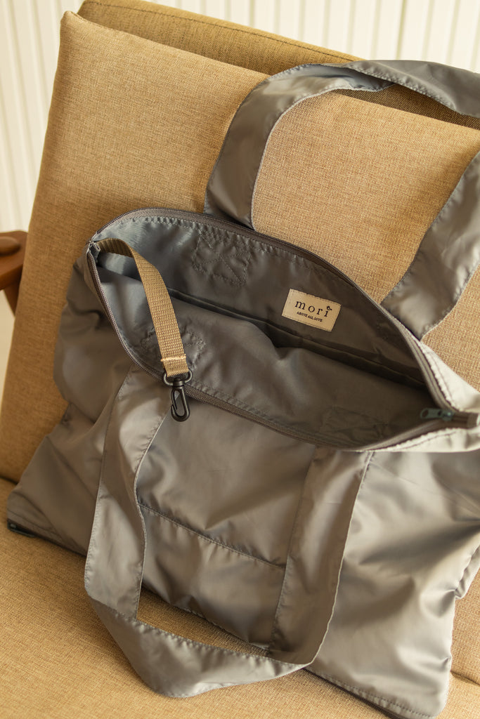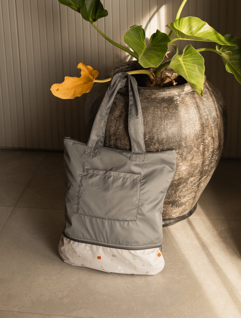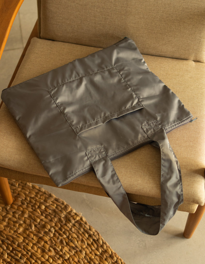 This new expandable tote bag when zipped up is a minimalist rectangular tote bag. When extended, the expanded semi-circle print fabric portion adds extra space for you to carry bulkier items. Use it to expand storage on the go or for 2 different looks for your every day and travel adventures!