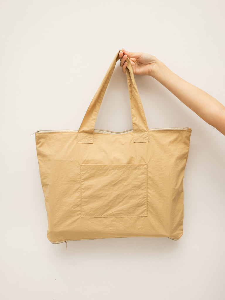 This new expandable tote bag when zipped up is a minimalist rectangular tote bag. When extended, the expanded semi-circle print fabric portion adds extra space for you to carry bulkier items. Use it to expand storage on the go or for 2 different looks for your every day and travel adventures!