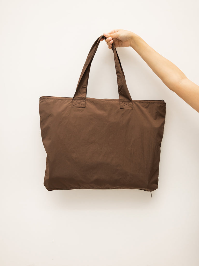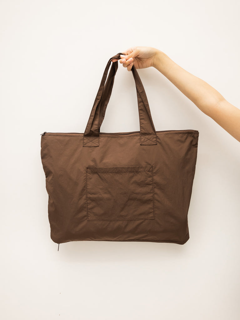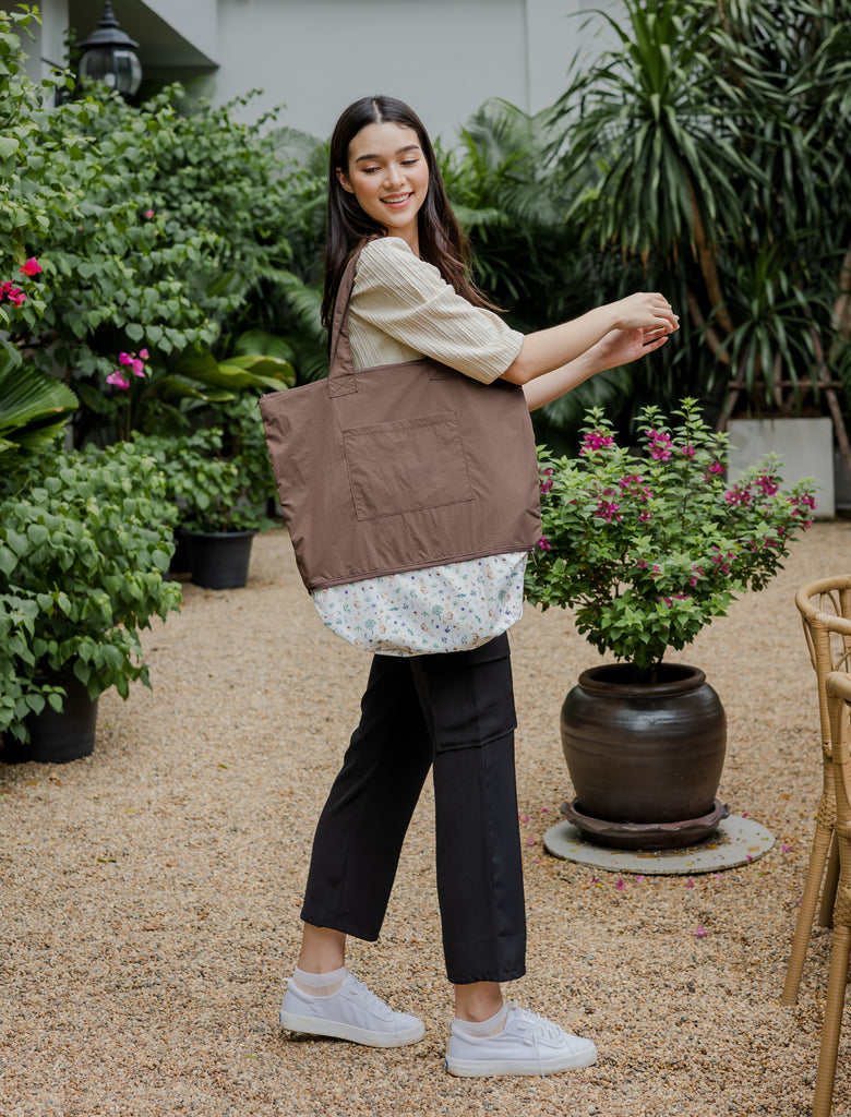 This new expandable tote bag when zipped up is a minimalist rectangular tote bag. When extended, the expanded semi-circle print fabric portion adds extra space for you to carry bulkier items. Use it to expand storage on the go or for 2 different looks for your every day and travel adventures!