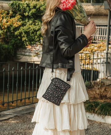 Black Romantic Florals Dual Zip Sling Bag 3.0