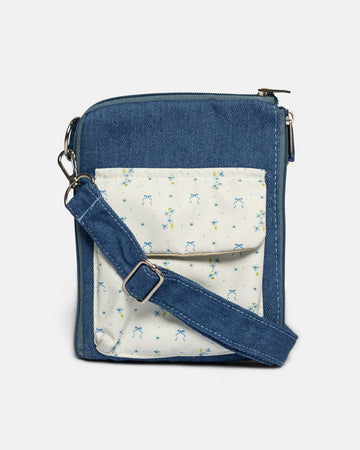 Mini Florals Ribbons Denim Cargo Dual Zip Sling Bag 3.0